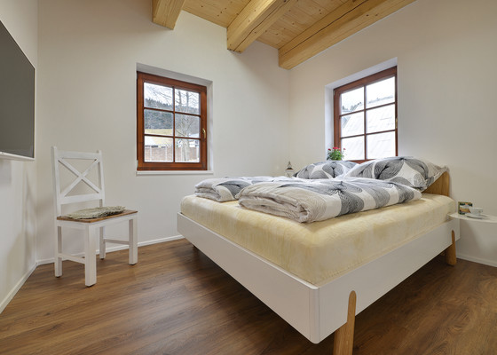 Postel Mamma od JITONY s rozměry 180 x 200 a matrací z líné pěny Vám poskytne příjemný spánek. Povlečení z mikroflanelu. V pokoji je velká skříň s úložným prostorem a posuvnými dveřmi. LG Smart TV s Netflixem, Apple TV. Možnost dětské postýlky. Vinylová podlaha. Stmívací světla na dálkové ovládání. V koupelně v přízemí: fén, walk in sprcha, luxusní koupelnová kosmetika L´Occitane, pračka se sušičkou, WC s bidetem oddělené.